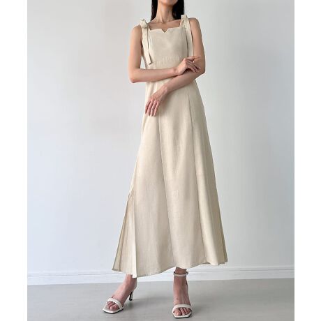 肩リボンリネン混サイドプリーツマーメイドキャミワンピース