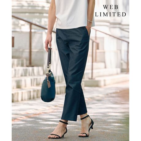■デザイン綺麗な細身シルエットがポイントのテーパードパンツ。足元を美しく見せる絶妙なレングスで、足首周りがすっきりと引き立ちます。素材のハリ感とも相まって全体のシルエットを引き締め、洗練された印象の1着です。ウエストベルトのタブ&釦ディテールがポイントです。後ろのゴム仕様が快適な穿き心地を実現しつつ、きちんと感を損なわないバランスを保っています。デイリーからちょっとしたお出かけまで、幅広く活躍する1枚です。裏地無しで、涼しい穿き心地にしました。カラーは、柔らかく女性らしいベージュ(#033)、温かみと上品さを兼ね備えたキャメル(#034)、表面にほんのりニュアンスのあるネイビーシャンブレー(#074)、きれいめで様々なシーンに活躍するネイビー(#075)の4色展開です。