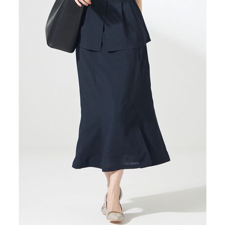 ・ソフトマーメイドシルエットのナロースカート・広がり過ぎないシルエットでフェミニンな中にもきちんと感のあるデザイン・ウエストに施したベルトバックルデザインがウエストインした時もポイントに・ラップ風デザインで綺麗めにもカジュアルにも着回ししやすい・足さばきの良さと抜け感をプラスする、重ねスリットデザイン入り