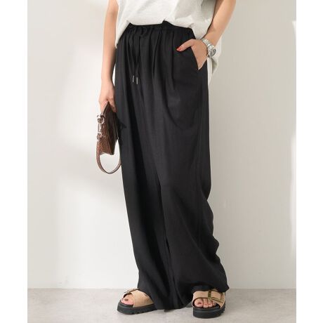 接触冷感リネンブレンドタックワイドパンツ