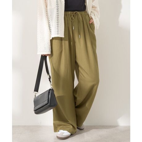 接触冷感リネンブレンドタックワイドパンツ