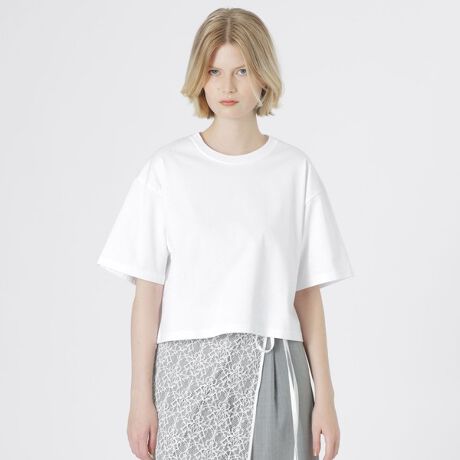 スーパーハイゲージで編み立てることで、綿のカジュアル感を残しながらもハリ・光沢感がありすっきりとした表情になっています。