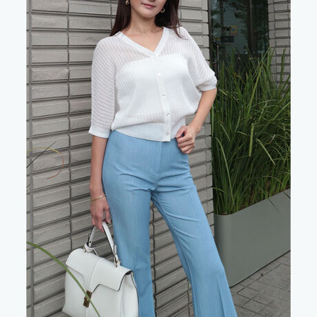 ストライプ状の透かし柄を施した涼しげなニットカーディガン。