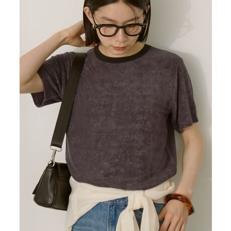 首元の配色リブが目を惹くリンガーTシャツ。ソフトな肌触りのパイル生地で仕立て、暑い季節でも快適に着用していただけます。レトロな雰囲気がありつつ、旬なコンパクトフォルムで様々なボトムと好相性。一枚着はもちろん、キャミソールなどを重ねたレイヤードスタイルもおすすめです。透け感[ややあり]