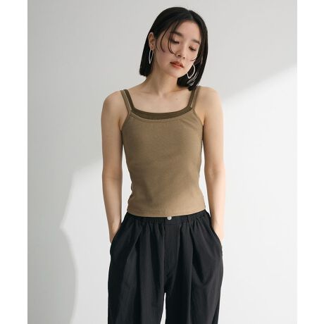 レイヤードデザインがトレンドライクなカップ付きキャミソール。トップスとしてはもちろん、インナーとしても活躍してくれる着回し力の高さが魅力の1枚です。伸縮性のあるリブカット素材で着心地も抜群。トーンを揃えた絶妙な配色デザインがおしゃれなスタイリングを後押しするおすすめのアイテムです。透け感[なし]