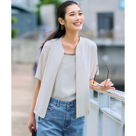 【一部店舗限定/吸水速乾/UVカット/接触冷感】ストレッチジョーゼット フレンチスリーブ ブルゾン