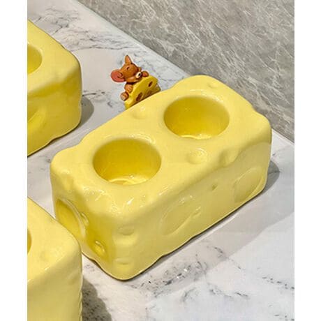 本物のチーズのようなユニークなデザインが特徴の2つ穴タイプの歯ブラシスタンド。遊び心あふれるフォルムと柔らかいカラーで、洗面スペースをおしゃれに。コンパクトながらも、歯ブラシと歯磨き粉をスッキリ収納できる実用的なアイテム。