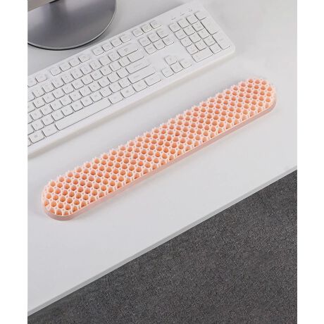 ハニカム構造を採用したシリコン製のキーボードリストレスト。優れたクッション性と通気性を備え、長時間のタイピングでも手首に負担をかけず快適に使用可能。シンプルながらも機能的なデザインで、オフィスワークやゲーミング環境にも最適。