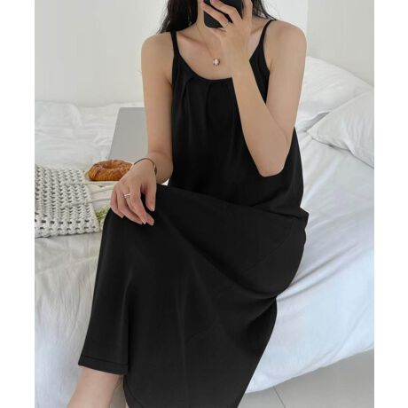 華奢なストラップとゆるやかな落ち感が魅力のキャミワンピース。胸元に寄せたタックが自然なドレープを生み出し、シンプルながらも女性らしさが光る一枚です。