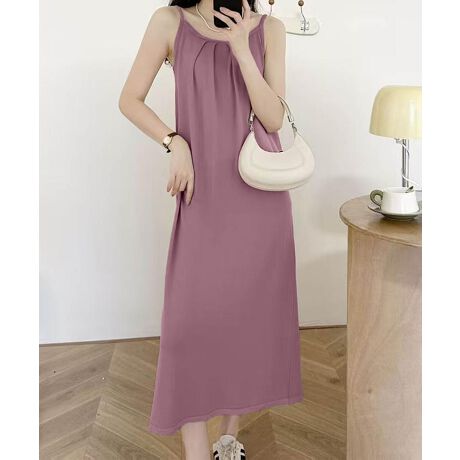 華奢なストラップとゆるやかな落ち感が魅力のキャミワンピース。胸元に寄せたタックが自然なドレープを生み出し、シンプルながらも女性らしさが光る一枚です。