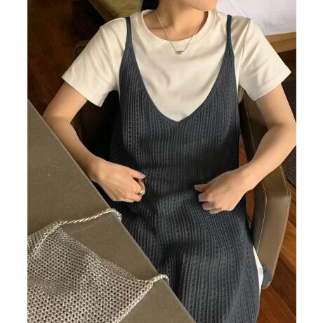 【aimoha】透かし編みキャミソールニットワンピース