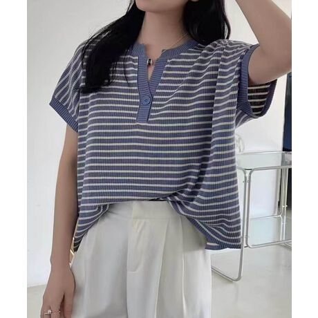 【aimoha】Yヘンリーネックボーダーリラックスプルオーバー