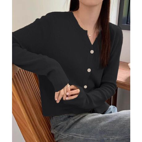 程よいフィット感とコンパクトなシルエットで、前を閉じてトップスとしても、開けて羽織りとしても活躍。ベーシックながらも上品な雰囲気が漂い、普段使いからお出かけまで幅広く使えます。