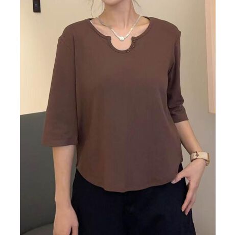 【aimoha】ボタン付きネック七分袖カットソー