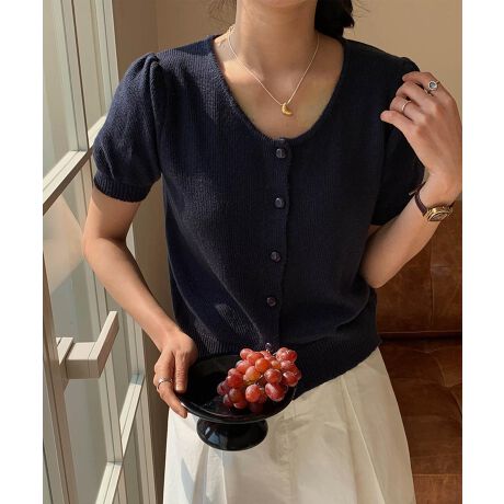 【aimoha】パフスリーブ半袖ショートカーディガン
