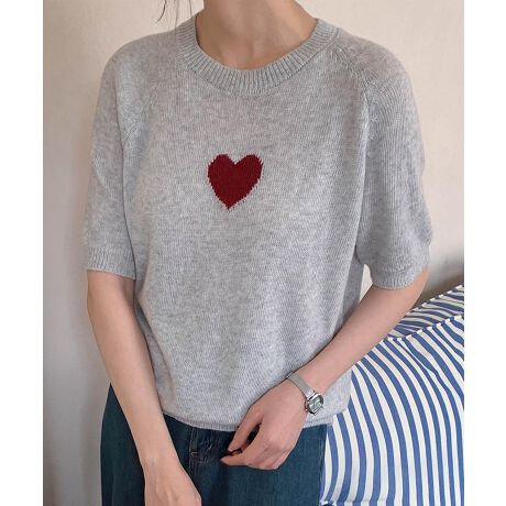 胸元にあしらわれたハートモチーフが目を引く、ガーリーな印象のニットトップス。立体的でふんわりとした質感のモチーフが、シンプルなデザインにほんのり甘さをプラスしてくれます。
