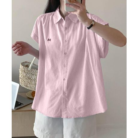 【aimoha】ワンポイント刺繍入りシャツ