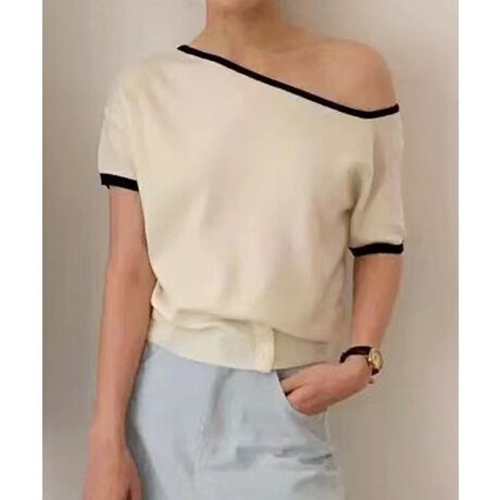 【aimoha】アシンメトリーショルダー ニットトップス