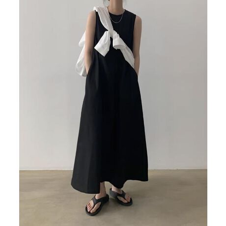 【aimoha】Aラインノースリーブロングワンピース