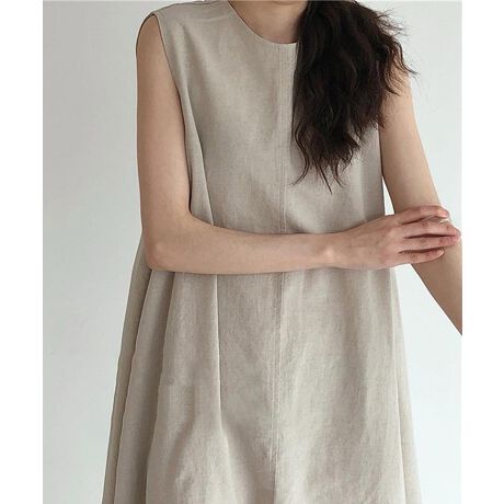 ストンと落ちるAラインシルエットが美しい、ノースリーブロングワンピース。体のラインを拾わず、ゆるやかに広がる形が、動くたびに軽やかな印象。