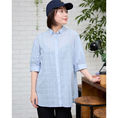 [型番:467R6310]オーガニックコットンを使用した透け感のある素材を使用したブラウスです。少しオーバーサイズのサイジングは夏にぴったりです。