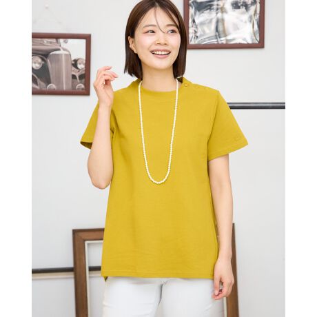 オーガニックコットン100%のかのこ素材を使用したカットソーです。低めのスタンドカラーで襟元が気になる方にもおすすめです。袖の枠のくま刺繍がアクセントです。