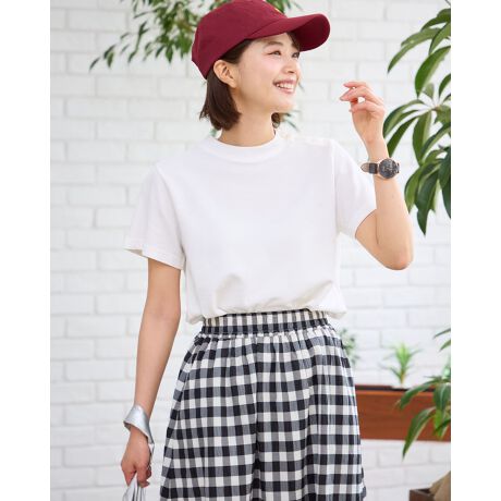 オーガニックコットン100%のかのこ素材を使用したカットソーです。低めのスタンドカラーで襟元が気になる方にもおすすめです。袖の枠のくま刺繍がアクセントです。