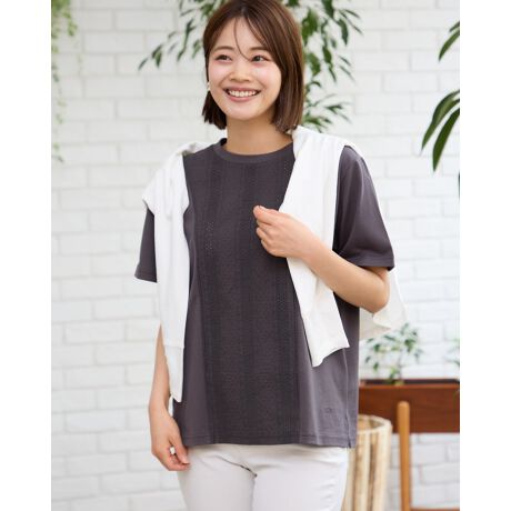 オーガニックコットン切替レースTシャツ