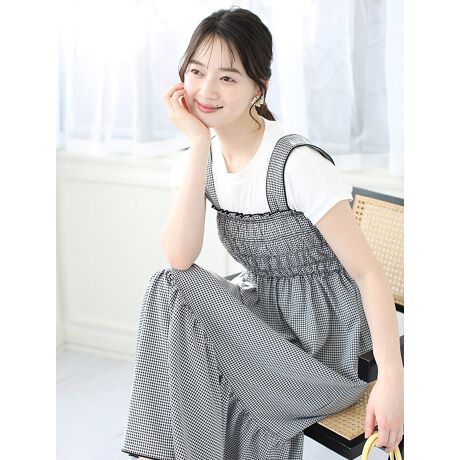 細かいギャザーで寄せられたシャーリングが女性らしさを演出するワンピースです。幅広い年齢層に支持されるギンガムチェックがアイディリックで落ち着いた印象をあたえます。インナーにTシャツやノースリーブを合わせて違った表情を楽しめるアイテムです。