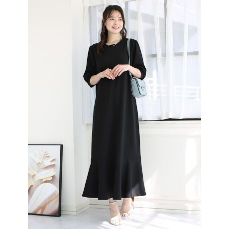 ドライタッチで着心地もよいパフスリーブマーメイドワンピース
