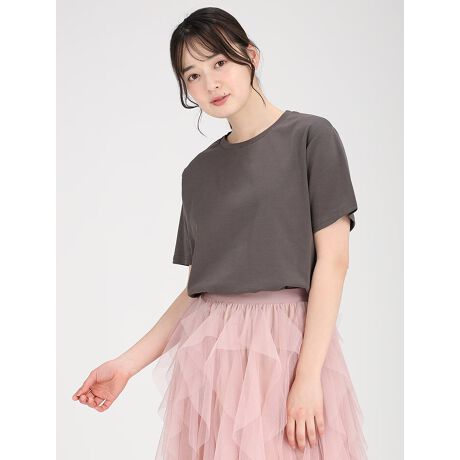 着心地のよい生地でデイリーに着回したい最強のベーシックTシャツです。ほどよいサイズ感のシルエットなので、1枚で着用するのはもちろん、ジャケットやカーディガンなどのインナーとしても活躍するアイテム。色はホワイト、ブラック、ダークグレー、ピンクの4色展開です。