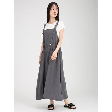 ウエストのドローコードで個性的なスタイリングが楽しめるジャンパースカートです。ドローコードを絞ったりゆるめたり、その日の気分で様々な表情を演出できるアイテム。合わせる小物次第で幅広いシーンで活躍するアイテムです。