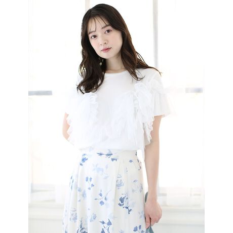 シアー感ある華やかなチュールに誰もが虜になるドッキングTシャツ