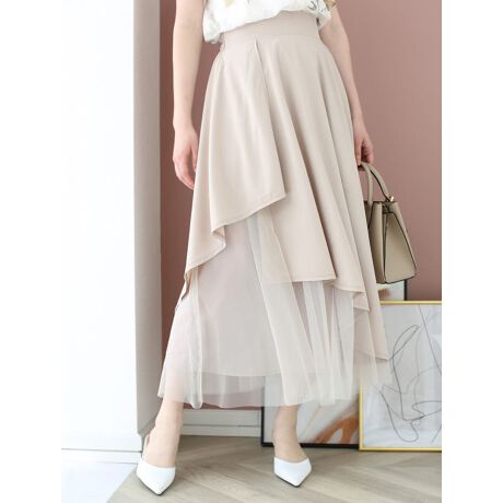 アシンメトリーな合わせがエレガントさを演出するイレヘムチュールスカート