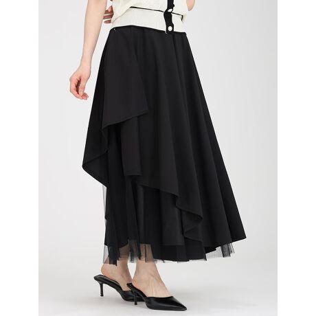 アシンメトリーな合わせがエレガントさを演出するイレヘムチュールスカート