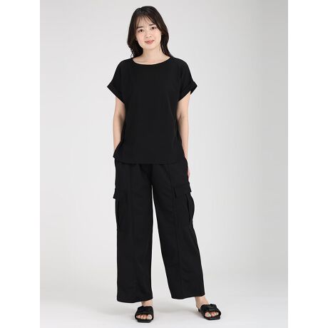 サラリとした肌触りが特徴のペアスキン生地で仕上げた着心地抜群のセットアップです。シワや型崩れを起こしにくい生地なのでお手入れも簡単。?リラックス感がありながら、折り返した袖やパンツのポケットなどがおしゃれ見えします。