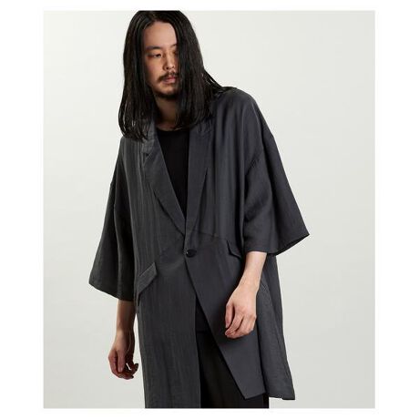 ミニマルなデザインと洗練されたシルエットが融合したハーフスリーブロングJKT。軽やかな着用感をもたらすショートスリーブに、縦のラインを強調するロング丈のバランスが絶妙。フロントは1つボタン仕様で、スマートな印象に。センターベントやフラップポケットなど、ディテールにも品格を宿します。通気性に優れた軽量素材を採用し、春夏に快適なレイヤードスタイルを可能にします。