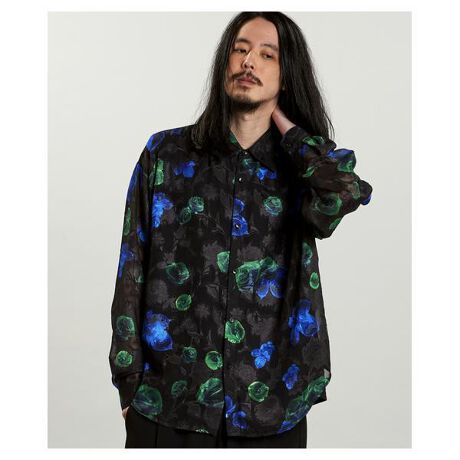 シアージャガードに咲き誇るフラワープリントが目を惹く、シアーフラワーBIGシャツ。透け感のあるエアリーな素材と、ゆったりとしたビッグシルエットが、春夏らしい軽快さとリラックス感を演出。フロント・袖のボタン使いや、緩やかなラウンドヘムも、抜け感のある佇まいを後押しします。一枚でもインナー使いでも様になる、モードと儚さが共存する一着。