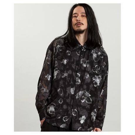 シアージャガードに咲き誇るフラワープリントが目を惹く、シアーフラワーBIGシャツ。透け感のあるエアリーな素材と、ゆったりとしたビッグシルエットが、春夏らしい軽快さとリラックス感を演出。フロント・袖のボタン使いや、緩やかなラウンドヘムも、抜け感のある佇まいを後押しします。一枚でもインナー使いでも様になる、モードと儚さが共存する一着。