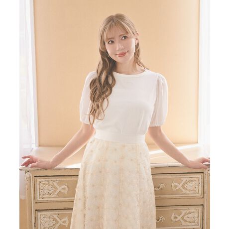 袖に軽くてふわっとした異素材を使用しております。