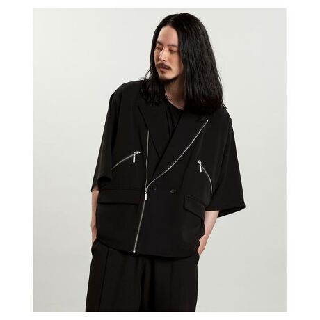 ダブルライダースのエッセンスを取り入れたハーフスリーブジャケット。オーバーショルダーと幅広な袖口が、洗練されたルーズ感を演出。長めに設定されたハーフスリーブとラペル下まで伸びたファスナーデザインが、モードでスタイリッシュな印象を与えます。素材には涼しげなシャツ地を採用し、春夏のレイヤードに最適。ZIPポケットやフラップポケットなど、機能性とデザイン性を兼備しています。
