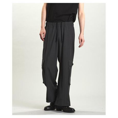 洗練されたミリタリーテイストを取り入れた、ワイドシルエットのカーゴトラウザーズ。タックによってセンタープレスを表現し、程よく綺麗目な印象を演出。カーゴポケットや裾のドローコードといった機能的なディテールが、実用性とデザイン性を両立。ウエストはゴム仕様で履き心地も快適、シワになりにくい素材でデイリーに活躍します。