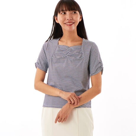 前ギャザーで品よく ブラウス見えのきれいめカットソー。