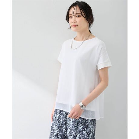 ふわりと揺れるエアリーなシアー素材をレイヤードしたトレンド感あふれるTシャツ。