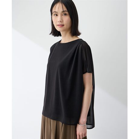 旬のシアー素材を組み合わせたレイヤード風デザインのプルオーバー
