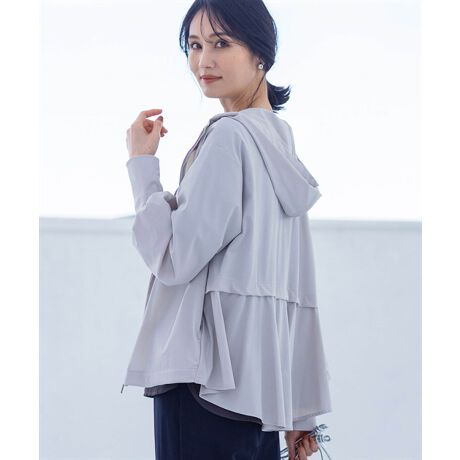 メッシュ切り替えのバックフレアシルエットが可愛いラッシュパーカー