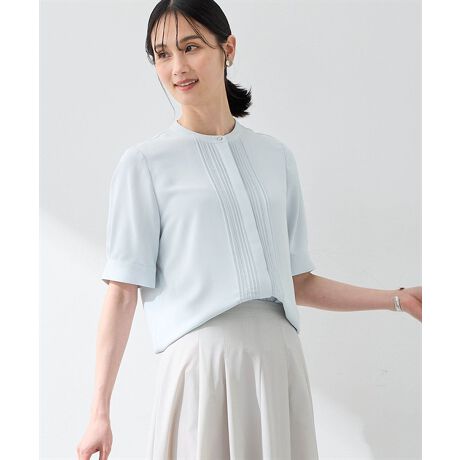 【美モーション】トリアセ風ピンタックブラウス【接触冷感・UVカット】