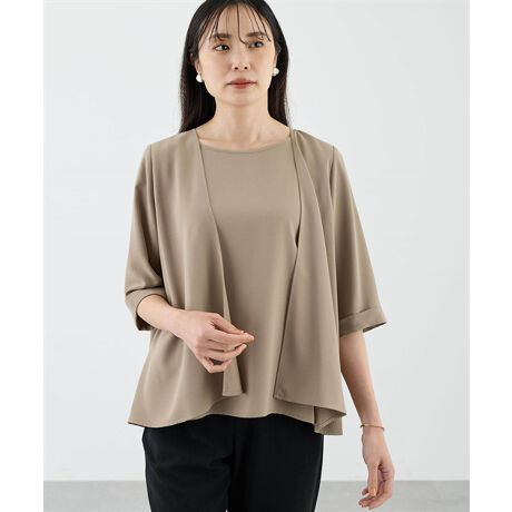【美モーション】トリアセ風レイヤードデザインブラウス【接触冷感・UVカット】