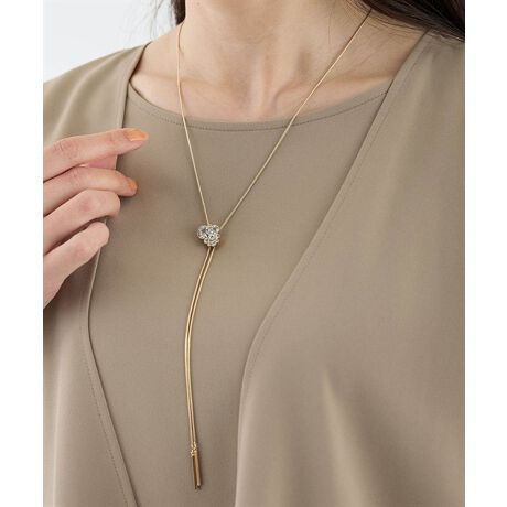澄んだ輝きを放つビジューのスライドパーツがアクセントになったロングネックレスです。