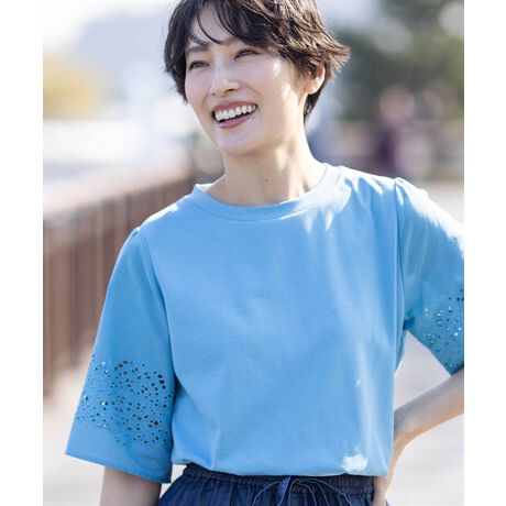 【ひやさら】【UVカット】刺しゅうスリーブTシャツ